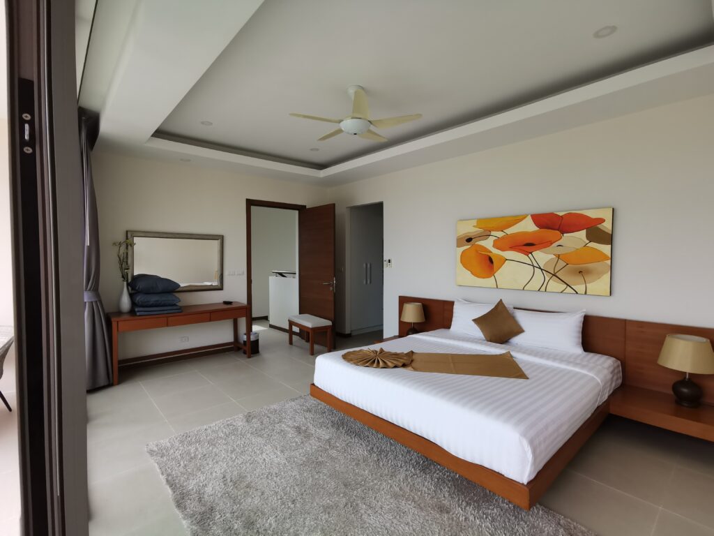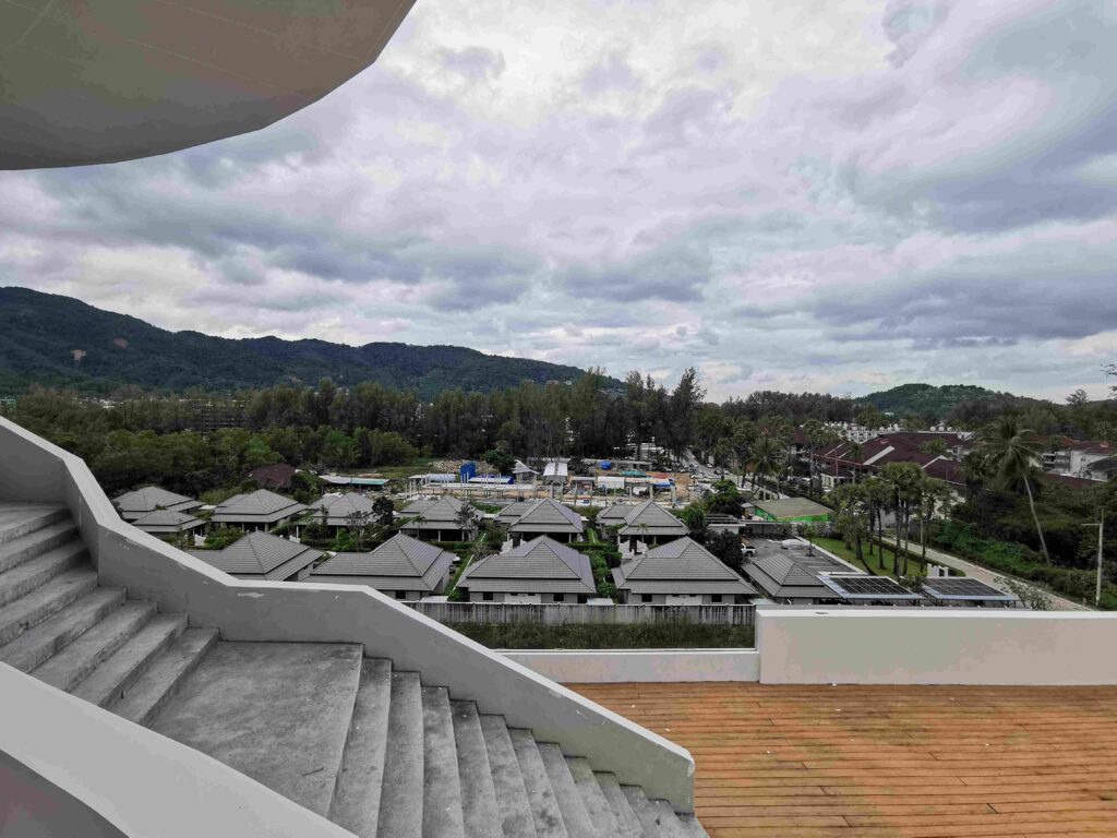 Huge multi-level villa 2 km from Nai Harn beach, beautiful mountain view, 1100 square meters of land, villa area 600 square meters, parking, 3 bedrooms, 4 bathrooms, huge utility rooms, large swimming pool, several outdoor areas for recreation activities. Large gated complex.